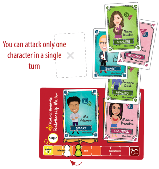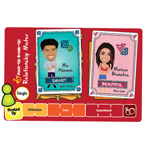 When you have an “other half” card placed next to your avatar on the relationship board, and your pawn is on the “Hooked-Up” mark, this means you are in a relationship, and you can roll the relationship die on your turn: